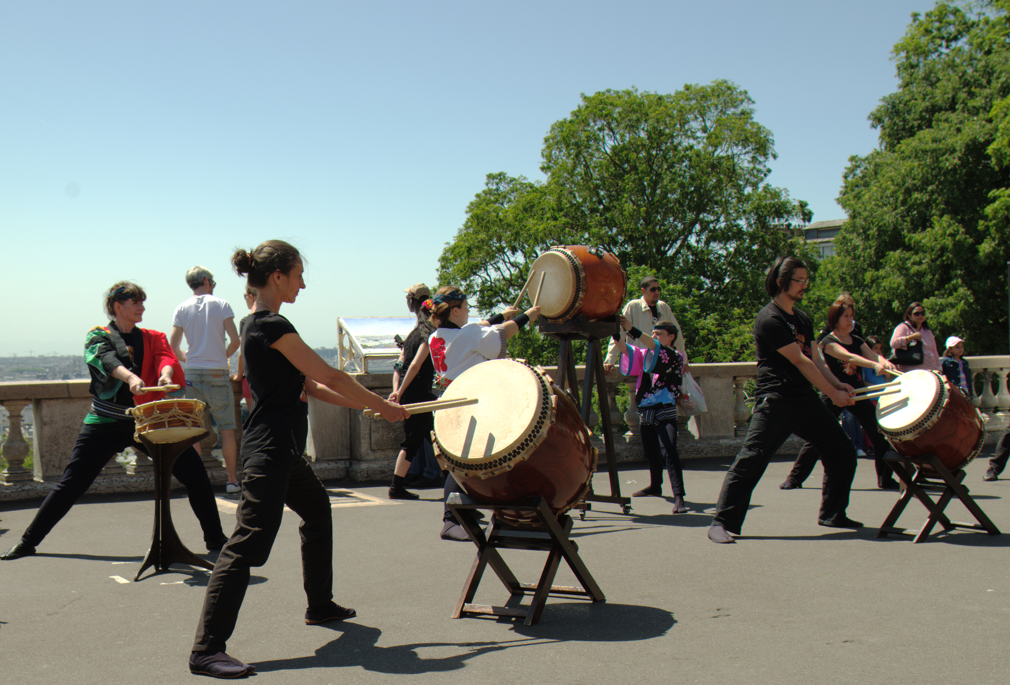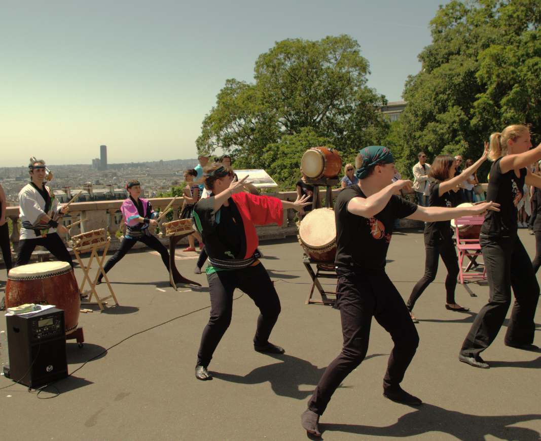Pour la France, les 3 coups de tambours ont été donnée devant le Sacré Coeur à Paris, suivi et suivi d'un petit concert de tambour et danses japonaises.